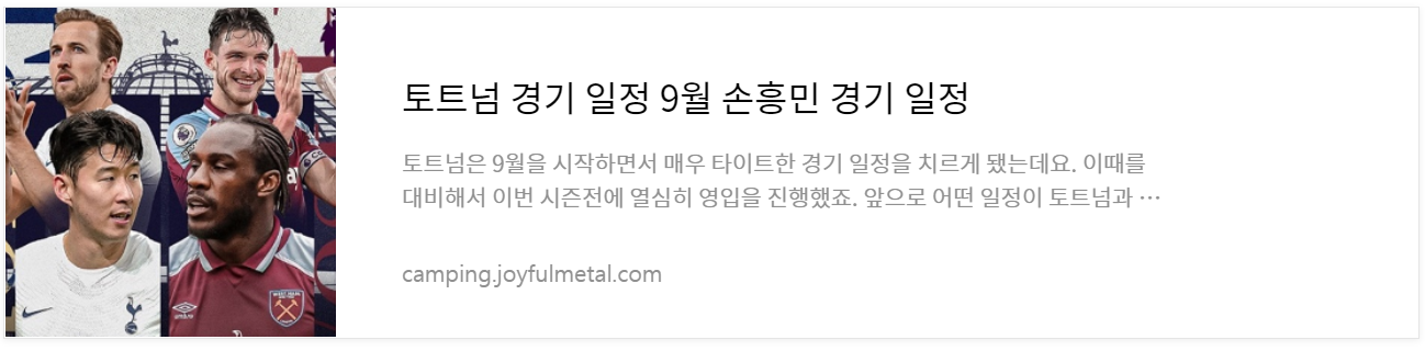 | 토트넘 경기 일정 9월 손흥민 경기 일정 (0) | 2022.08.30 |